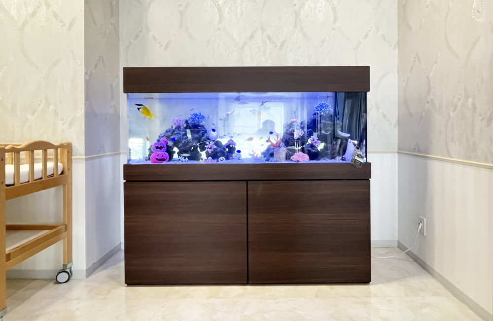愛知県名古屋市のクリニック様には、2021年より150cm海水魚水槽の水槽レンタルサービスをご利用いただいております。